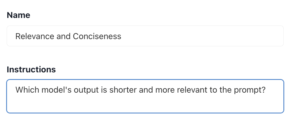Customize the judge LLM instructions. The outputs of each model will be compared against one another